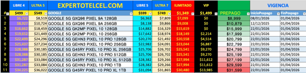 Promociones Google Pixel en Plan TelceL – 29 Enero 2029 –